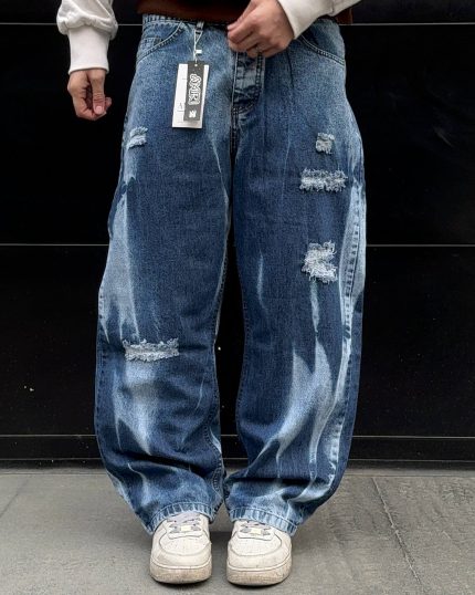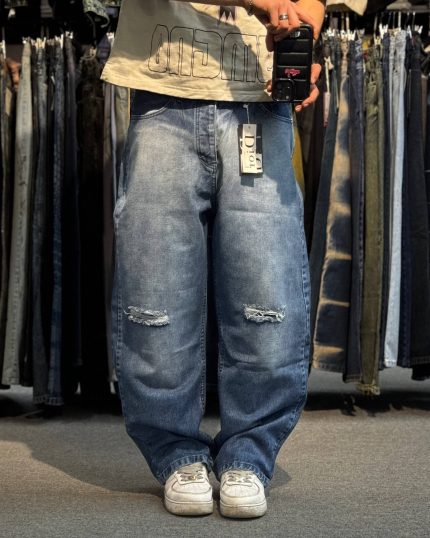 شلوار بگ ابی زانو زاب کد 87/3